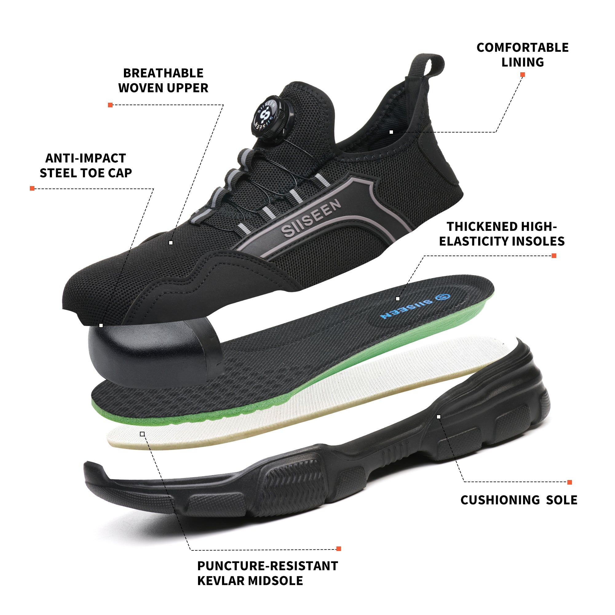 🔩 Steel Toe Protection (Anti-Smash)