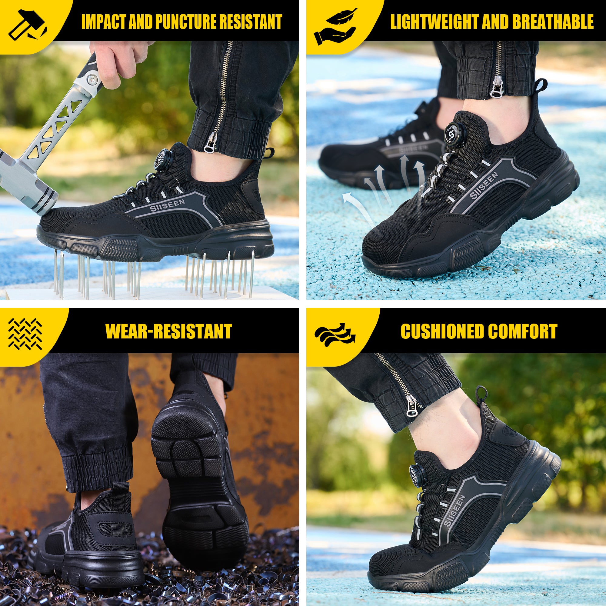 The 461 Ultra-Light Steel Toe Work Shoes combine the protection of a safety boot with the comfort of a running sneaker — ideal for construction, warehouse, manufacturing, delivery, outdoor work, and daily wear.