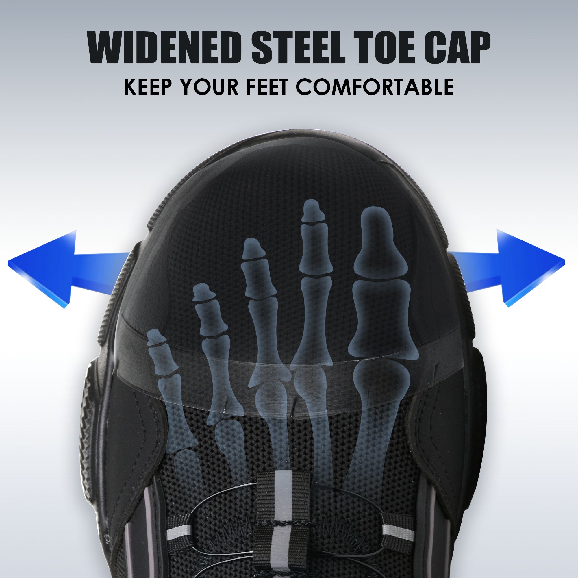 Tested to withstand heavy impact, the widened steel toe cap shields your feet from falling tools, equipment, or workplace hazards.